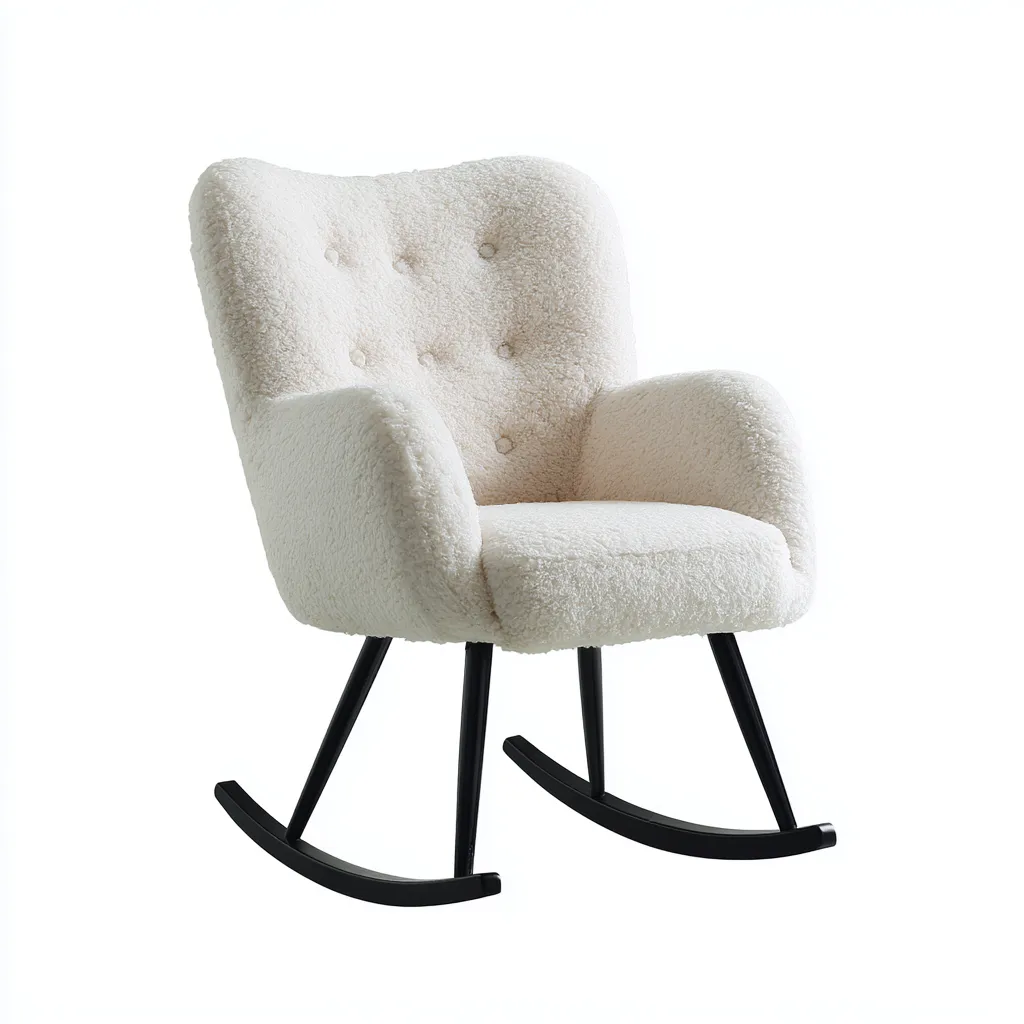 Fauteuil à bascule - tissu bouclé - 72x80x95 cm - blanc crème - design contemporain