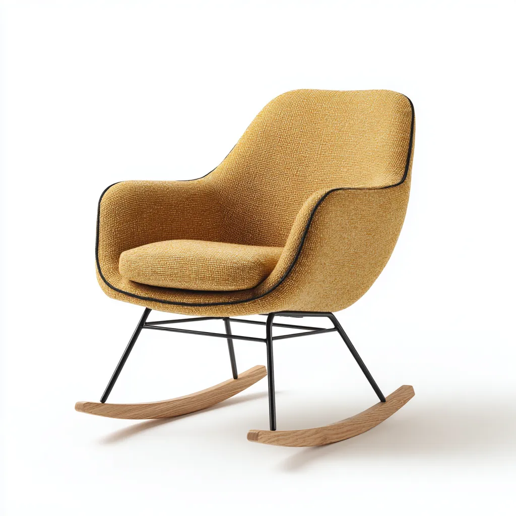 Fauteuil à bascule - Tissu-Bois-Métal - 79x73x95 cm - Jaune moutarde - Style contemporain