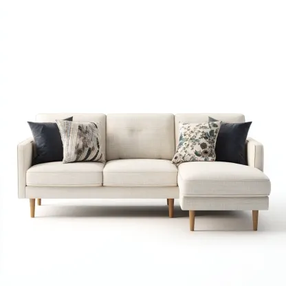 Canapé d'angle - Tissu-Bois - 274x170x83 cm - Ivoire - Style contemporain