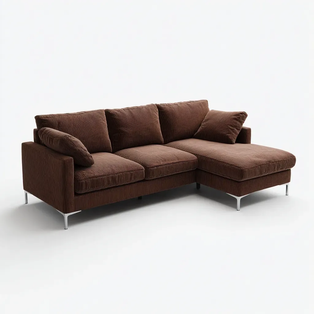 Canapé d'angle - Tissu-Métal - 268x168x84 cm - Marron - Style contemporain