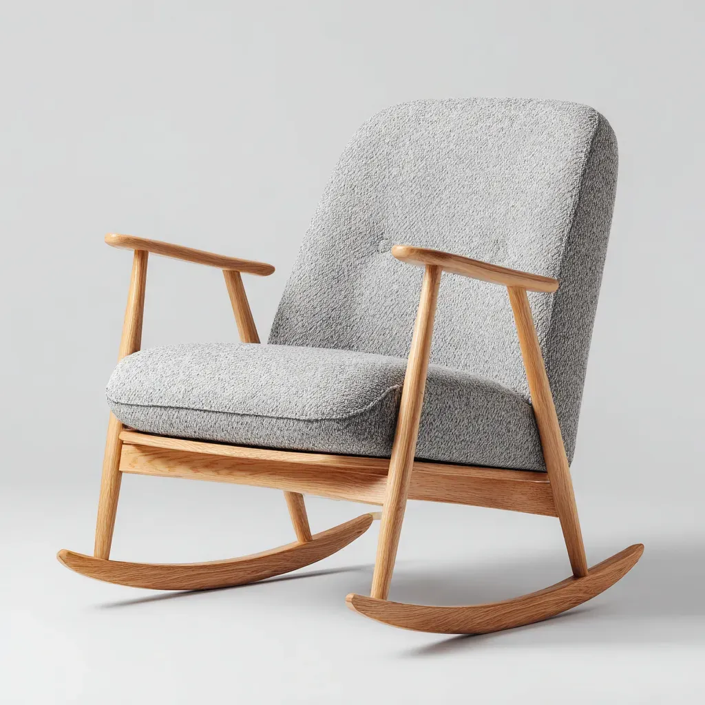 Fauteuil à bascule - Tissu-Bois - 81x75x96 cm - Gris clair - Style scandinave
